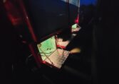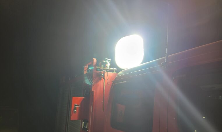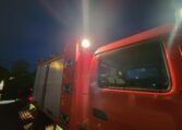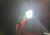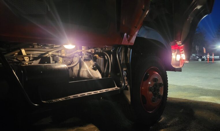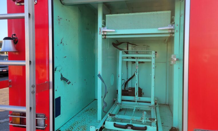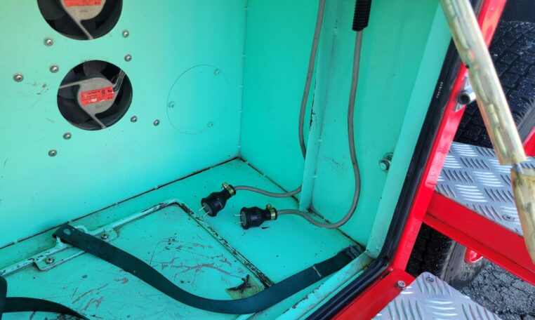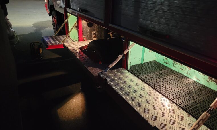 The truck features auxiliary spot lights as well as a massive, 110V electronically controlled spotlight. The truck has a 110V shore cable plugs as well as a generator compartment should you decide to install one to power the 110V flood light off-grid (it is very bright).