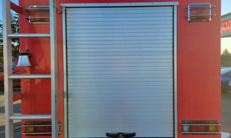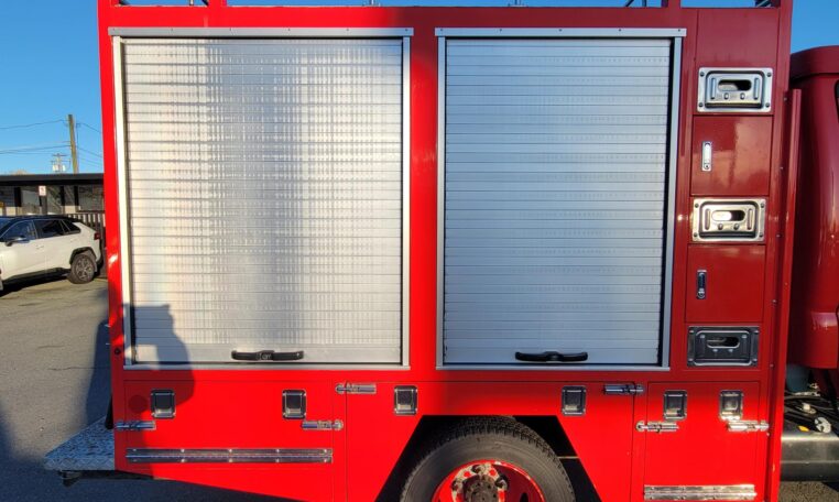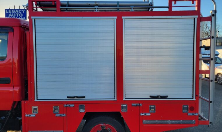 Service/fire body with aluminum roll-up compartment doors