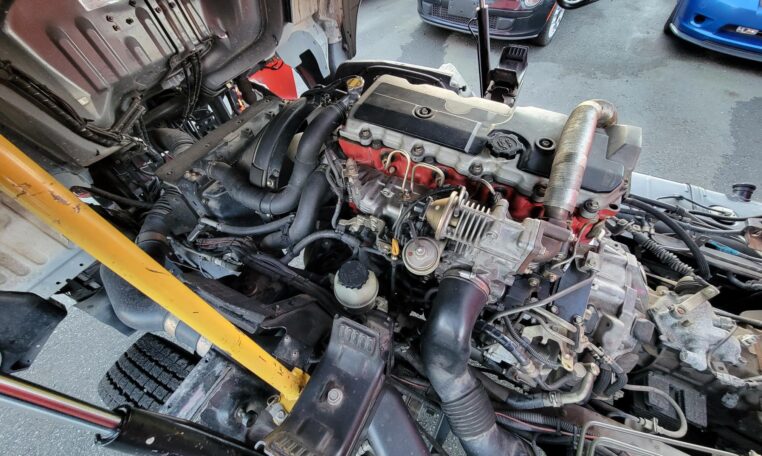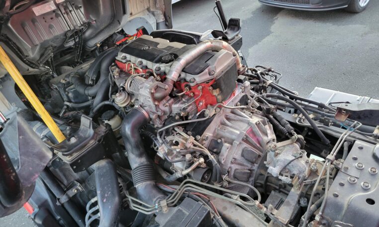 Cab tilts for easy engine access (see photos). Engine bay is very clean.