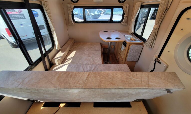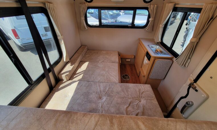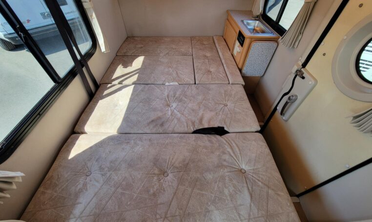 Lower bed: 6′ x 3.7′ (fits 2 adults)