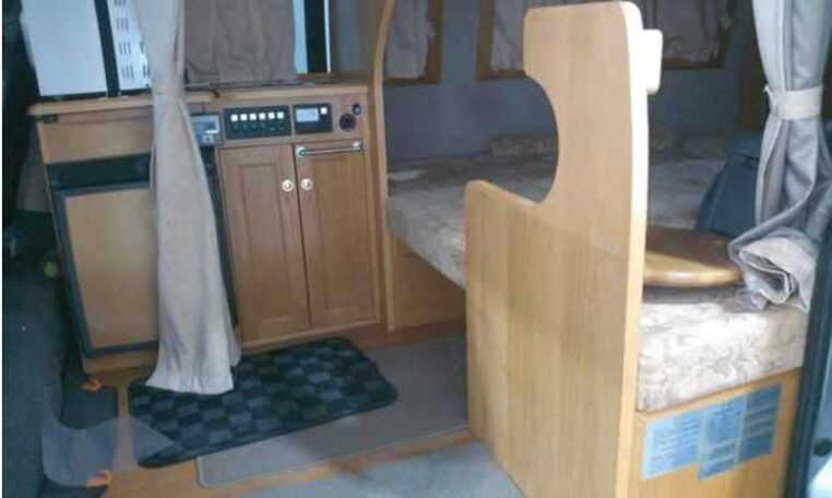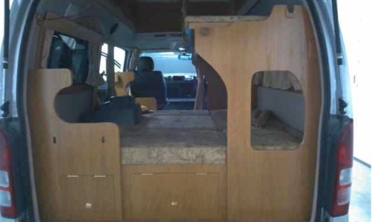 Toyota Hiace AWD Campervan wink bunk bed set up.